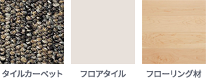 タイルカーペット・フロアタイル(塩ビタイル)・天然素材を用いたフローリング材の3種類です。