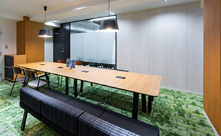 リフレッシュエリアは緊張を緩和させるグリーンや柔らかいブルーを取り入れることで、心理的に安らぎや安心を与えてくれます。意図的にオン・オフを切り替える空間に仕上げることで、仕事の生産性や従業員間のコミュニケーションが自然と促進されます。
