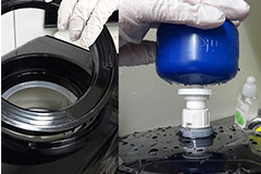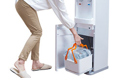ボトルを下部から⼊れることが出来るので、重い⽔ボトルを持ち上げずに交換が可能